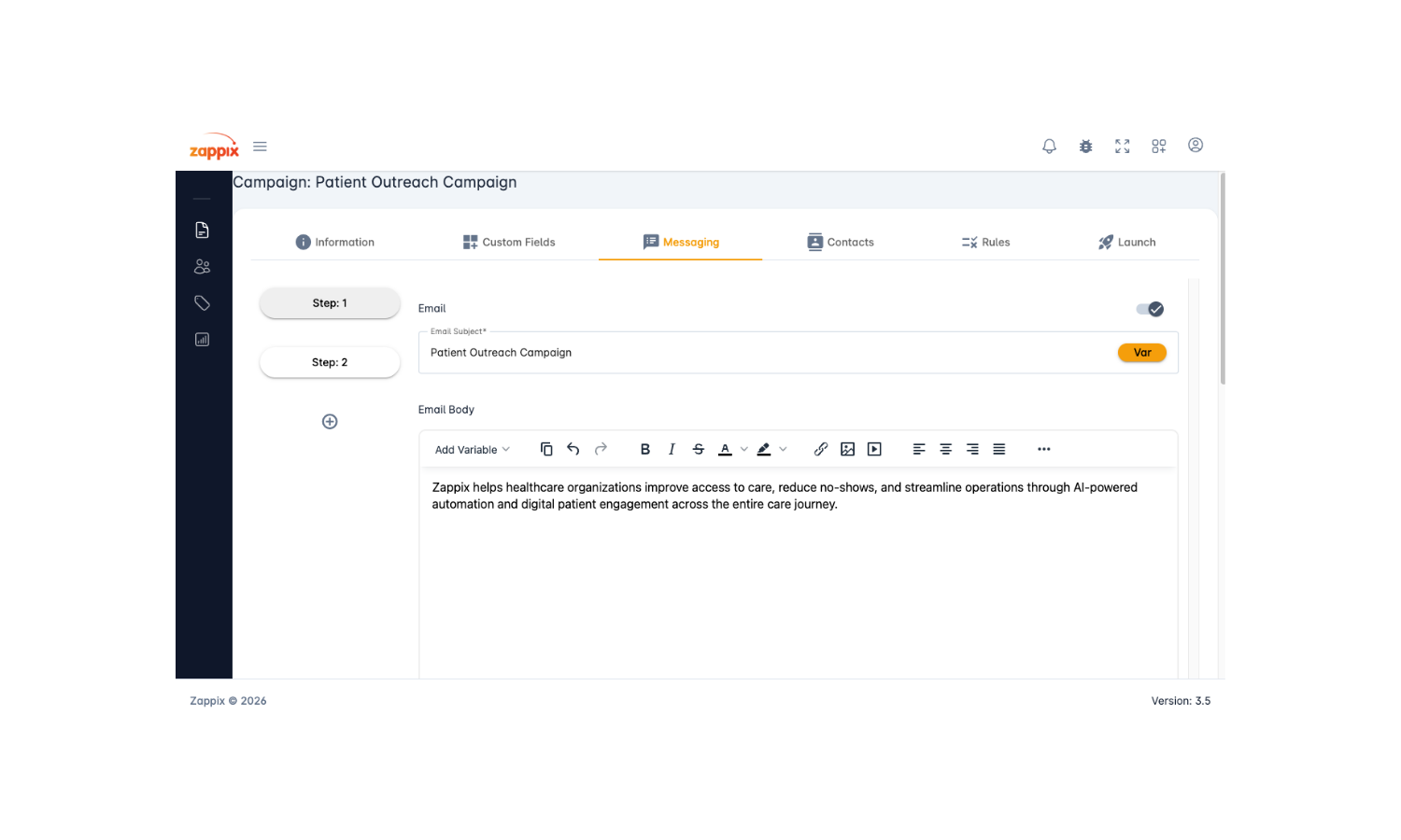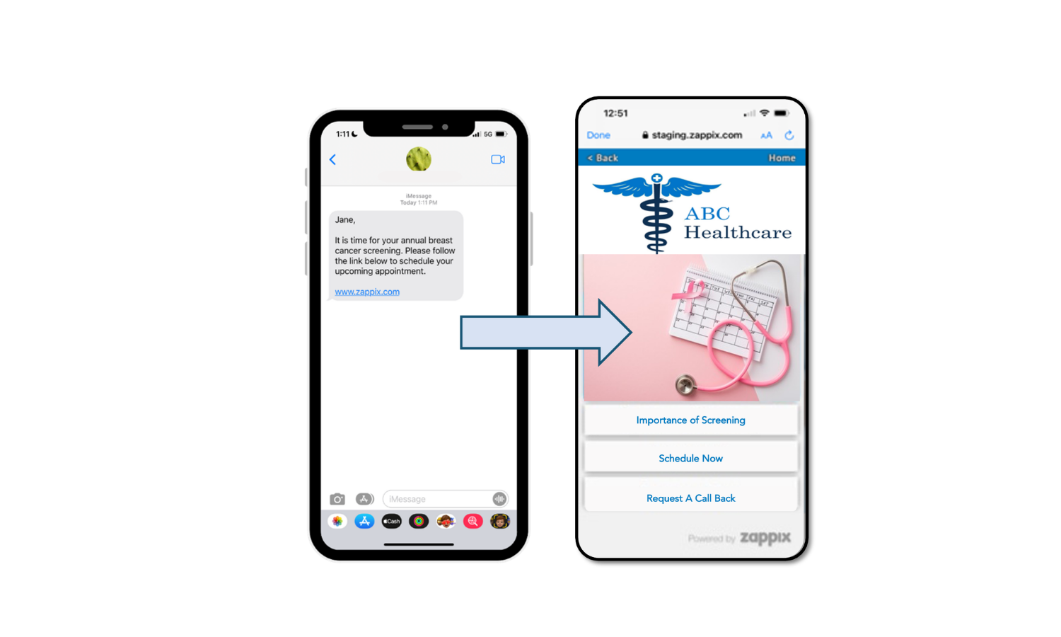 Zappix enables healthcare organizations to create targeted patient engagement campaigns following appointments or procedures.