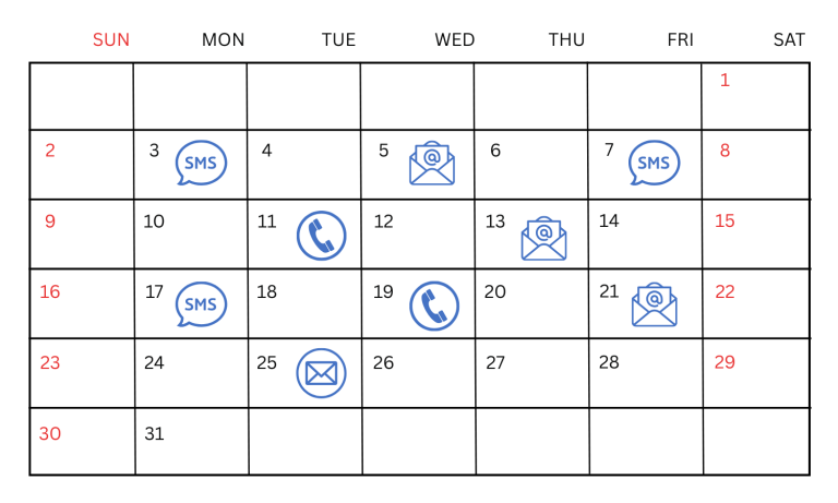 Reach your audience through the channels they prefer – text messages, emails, or outbound calls – all from a single, integrated platform.